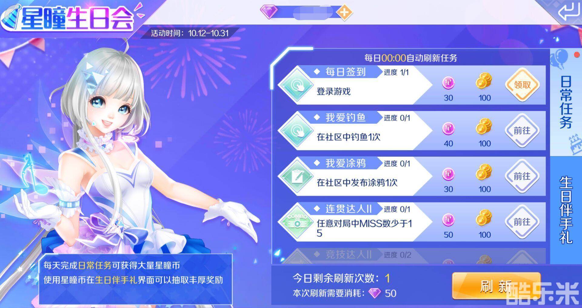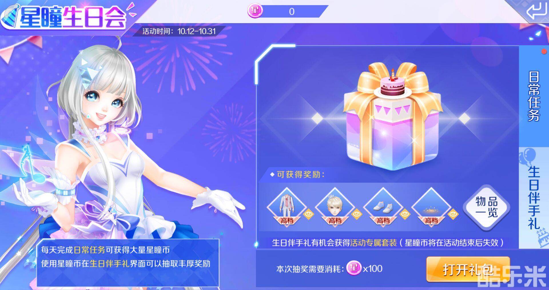 周末就是星瞳的生日啦,特意邀请各位dancer来参加生日趴!还有专属套装送给你们哦~dancer们每日完成日常任务,就能获得大量星瞳币!