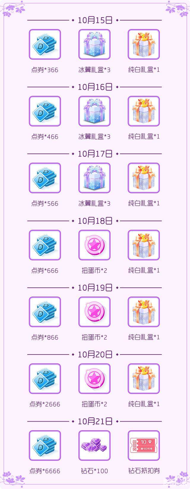 当然啦~星瞳怎么会忘记为dancer们准备丰厚的每周登录福利!10月15日-21日登录游戏,每天都能获得不一样的好礼哦!