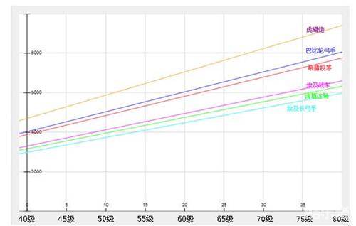 简单的说一下这张图怎么看,X轴为等级,Y轴为伤害总量(以防御方位60点防御为基础,无地形加成)的状态下,各远程兵种在40级(所有攻防都加完了,以后只加编队的状态下)造成的敌方伤害的函数图谱。一个蓝色兵种的巴比伦竟然如此扎眼,令我汗毛竖立双腿发软,蓝色兵种超越绝大部分紫色红色兵种,达到了这种伤害等级。同时敏捷为6,与小炮齐平。不用任何特殊技能,无视所有主城等级,默默完成了底层兵种的逆袭。黄天在上厚土为证,波斯唯一远程兵种并不输给任何人。谁说我波斯皮厚血多,那是前排。后排我们照样攻高敏强。