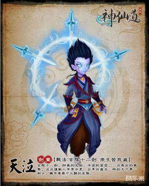 天泣:个人感觉这是三个伙伴里面外形最帅气的,职业是剑灵,绝技“玄阴十二剑”横向绝技攻击,最多打3个人