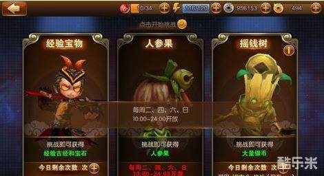 在游戏中的历练之地的系统中,更是为玩家特意开启了人参果的相关一个经验值获取的途径。基本上顽疾爱只要满足挑战开启并按时去刷取该副本,就能获得大量人参果神将,到时候合成材料就显得充裕不少。毕竟虽然和众多神将一样,有着属性和技能,但是其强度仅仅也只能作为经验值获取的消耗产物,所以玩家还是在游戏内容中针对性的对人参果进行收集。