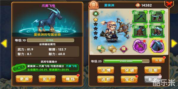 专属坐骑可以与武将绑定,激活特殊效果。