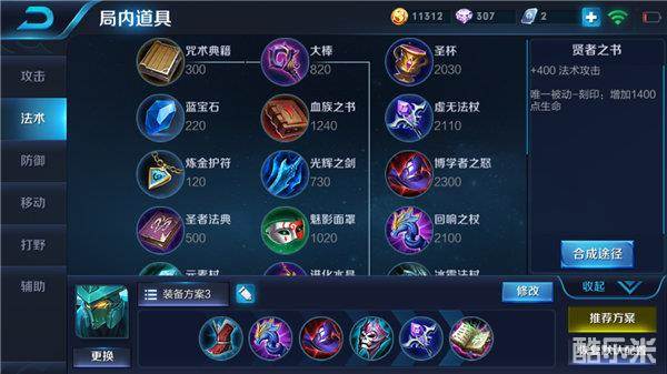 六神装:冷静之靴、回响之杖、博学者之怒、痛苦面具、虚无法杖、贤者之书