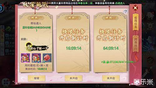 “修仙”必定是一个不断突破自我的过程,此次《莽荒纪2018》所更新的“极限挑战”就是以急速蜕变为目的重要提升玩法。此活动在每个月的1、3、5号和15、17、19号开启两轮,每轮3个任务。玩家需要在限定的时间内选择合适的任务接取,并尽快完成,否则超过时间将被视为挑战失败。