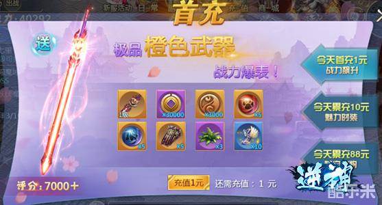 凡是资深的游戏玩家都知道,无论任何游戏,首充绝对性价比最高的一种充值方式。在《逆神》里,玩家首充1元游戏送极品橙色武器,再冲10元游戏送缤纷魅力时装,累充到88元游戏送激萌战将小宠。这真的是天下掉下来的大馅饼啊!你还不捡吗!