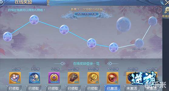 玩家持续在线就可以获得奖励,门槛很低,1分钟、3分钟等的在线时间都可以获得奖励。