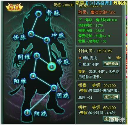 比如你12点休息,早晨7点起床,经脉夜里3点就升级玩了这个时候你完全可以用3个经脉加速卡,把这一级的经脉升完,等你早晨起床会发现下一级的仍然在修炼中,全部经脉8级会有属性奖励的请看图