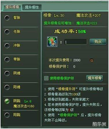 根骨提升对战力提高有很大的帮助,俗话说天下没有免费的午餐,悟性不需要花钱但是提升根骨就必须要花费元宝了。商城里常用道具里有根骨提升符28元宝一个,好刀用在刀刃上,我的个人心得是不管你是什么职业优先提升倒数第2个根骨,这个是提升本职业的技能攻击的。