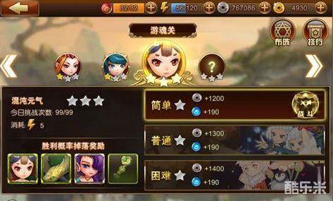 3. 每个关卡有简单、普通、困难三种难度,通关前一难度,才可以挑战后面的难度;