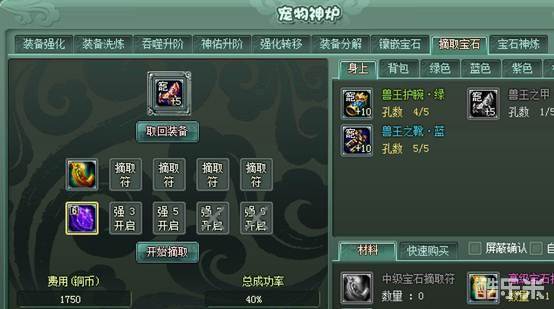 1.3 装备镶嵌之后可以使用摘取宝石功能返回宝石;