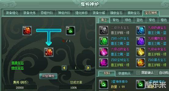 神炼宝石相关消耗:宝石神炼精华,铜币