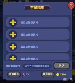 5、主角最多可与4位神将结缘,并且结缘后可更换。