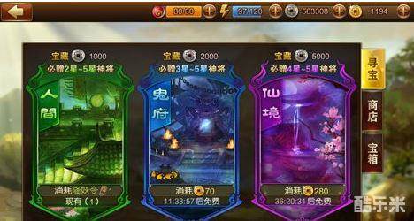 在完成限时免费寻宝后,该功能将会进入冷却阶段,22小时后即可再次开启。每次寻宝都会获得10点活动积分,限时神将活动结束后会根据积分排名进行发奖,积分相同时获得该积分时间越早排名越靠前。每获得150点活动积分将得到一次额外抽取的机会,这时可不消耗金币进行一次“金币抽取”。活动时间内获得积分达到60点,可在活动结束发奖时获得一份额外的超值奖励。