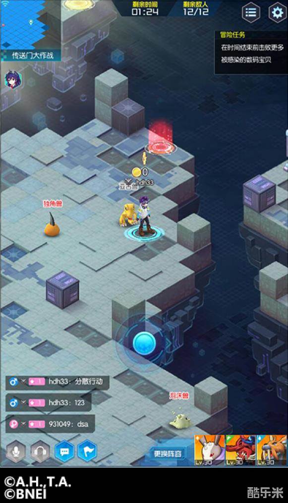 传送门大作战是集结里多人冒险玩法之一,支持至少两人,至多六人一起游戏。不仅可以和朋友们相约打资源,还能与更多朋友相遇,交流数码宝贝培养心得。
