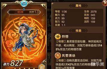 这个英雄非常实用,普攻技能和怒气技能都是高伤害的单体攻击,并且怒气技能附带1秒的无敌效果,是少数几个带有无敌效果的前排英雄,与元始天尊同时上阵,防御+23%。