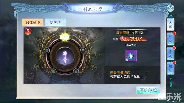 锻体秘境副本通过完成40级主线任务开启,点击副本-试炼,就可以找到锻体秘境。锻体秘境为单人副本,界面上有大概的战力评分推荐,玩家们可供参考,量力挑战。