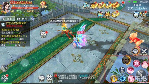 技能按钮模块主要在右下角的,分别为6个技能按钮、1个仙法技能按钮、一个普通攻击按钮、一个闪避按钮,还有一个就是上述介绍过的切换目标按钮的。点击对应的按钮即可释放技能,技能是会击向被选定的目标上的;点击中间的按钮角色就会使用普通攻击击向目标,技能和仙法技能是可以切换的,道友们来了解一下的: