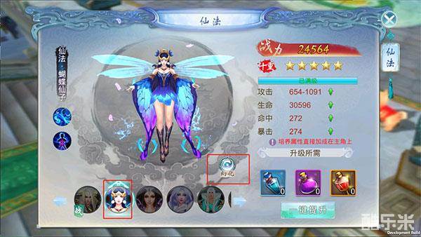 点击仙法图标即可进入仙法界面,在下方选择仙法即可看到不同仙法的主属性及升级所需材料,点击所需要出战的仙法后,再点击幻化即可更换,不同的战斗需要不同的仙法,道友们可以根据自己不同场景自由选择。