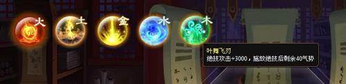 按照属性出现的顺序依次为:火→土→金→水→木,各种属性并不存在相克的关系,目前来看只是区分技能学习阶段的名称而已,木属性阶段是最高等级了,能增加3000点绝技伤害,并能保留40气势。最初级的火属性阶段是1000绝技,20气势。