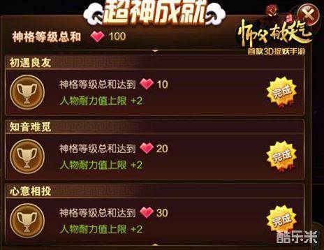 在师父有妖气中的相关游戏内容中,超神阁的对于神将的属性培育,主要是以玩家把捉到的妖怪进行献祭,从而对于每一位玩家的最为直接的属性加成则将是提升了神将的神格等级;而当神格达到一定等级,该妖神就会获得相应的战斗属性,虽然对应加成程度并不突出,但是却让玩家深感实用。