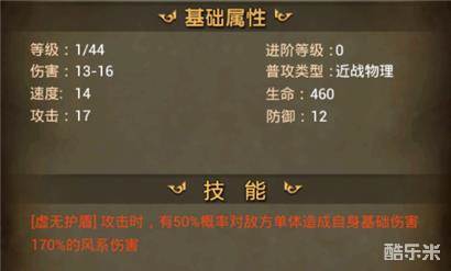 技能:攻击后,有50%概率对敌方单体造成自身基础伤害170%的风系伤害。