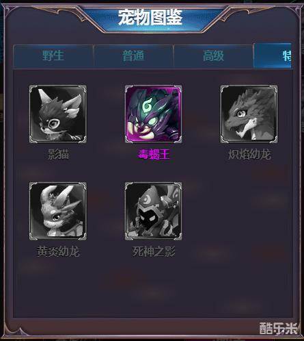 宠物依其珍稀程度分为野生、普通、高级、特殊和珍惜神兽5种