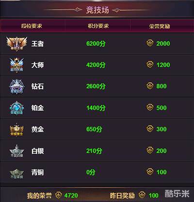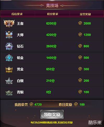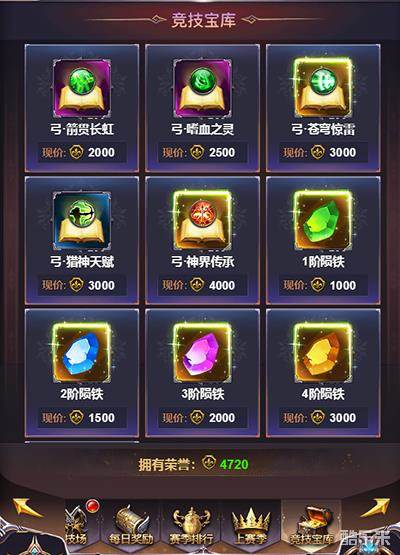 当你成为了最强王者,你会得到你应得的奖励。在竞技宝库中,荣誉可以用于兑换珍稀的物品,如技能书,材料。得到,必须要和付出成正比!