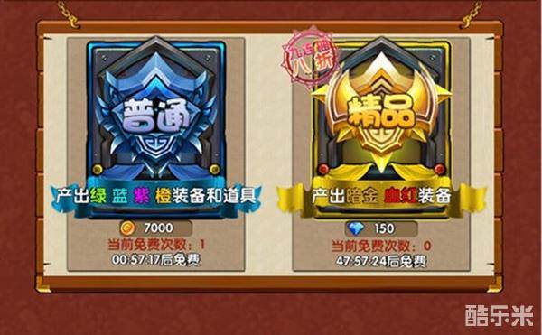 如果有钱任性不想花时间刷本呢?开宝箱是获得神装最快的方式,点击屏幕上方的‘百宝箱’即可进入宝箱系统。开宝箱有冷却时间,若不愿等可以花钱刷新。游戏里目前分金币宝箱和钻石宝箱两种,其中钻石宝箱专出精品装备和精品材料。