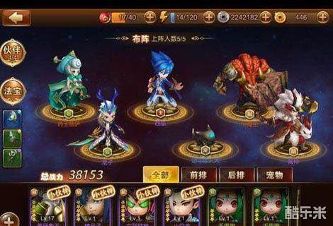 6.下方神将列表可以再“全部”、“前排”、“后排”、“宠物”之间进行切换