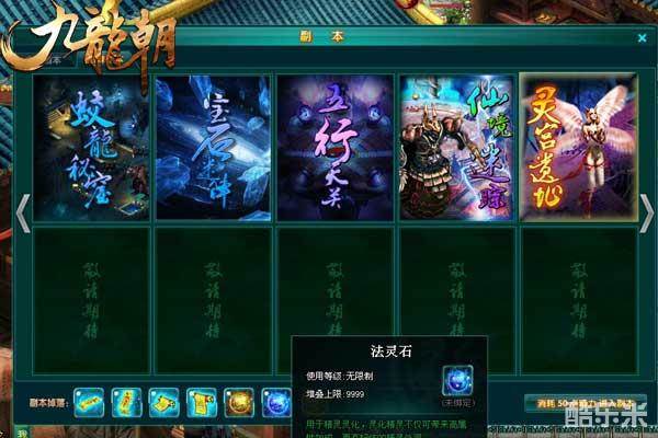 九龙朝灵宫遗址副本这个副本产出的道具可以交易,且非常珍贵,因此成为了九龙朝眼下最热门的一个副本之一,玩家进入灵宫遗址副本需要消耗精力值,每天共三次进入机会,分别消耗20、50、100点精力。