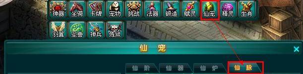 在九龙朝中玩家开启仙炉系统后,系统会自动激活仙脉系统。点击游戏页面上方的图标【仙宠】,打开仙宠系统界面后,选择“仙脉”即可打开升级界面。