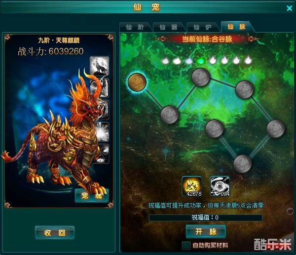 ①每次仙脉开脉均有几率成功,失败则会增加祝福值。祝福值越高,开脉成功几率越高。