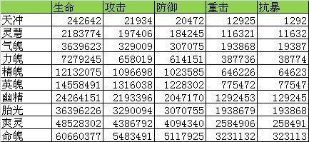 成功唤醒命轮可获得强大的属性加成,让你自身的生命、攻击、防御、身法、抗暴、增伤、减伤将持续暴涨,成为强者指日可待。具体如下所示:
