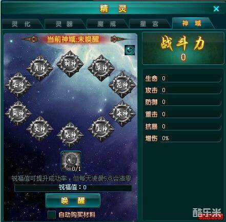 ①每次唤醒神域均有几率成功,失败则会增加祝福值。祝福值越高,唤醒的成功几率越高。