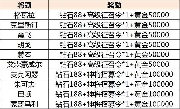 招募到特定将领可以最高领取1280钻石,神将等你抽取!