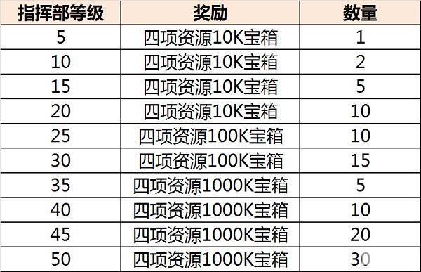指挥部达到指定等级即可获得丰厚的资源奖励。