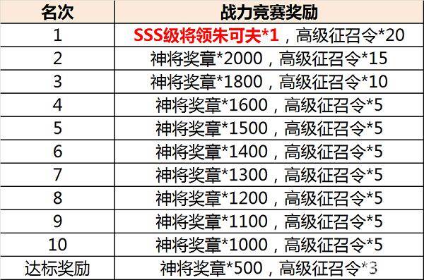 活动期间内冲击排名,结算时按照战力排名发放奖励,最高可领SSS将领-朱可夫,达标也有奖励哦!
