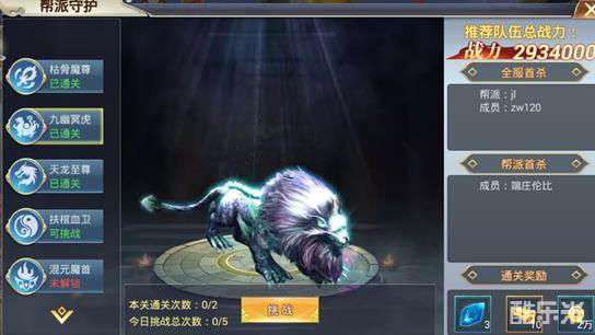 值得一提的是“帮派守护”活动,道友们可以根据每个BOSS关卡所推荐的战斗力,邀请本帮挚友组成三人小队一起刷BOSS,每天每人可以挑战不同BOSS五次,而每一次击败BOSS都可以获得铜钱、升星神石等奖励,可让战斗力得到飙升!