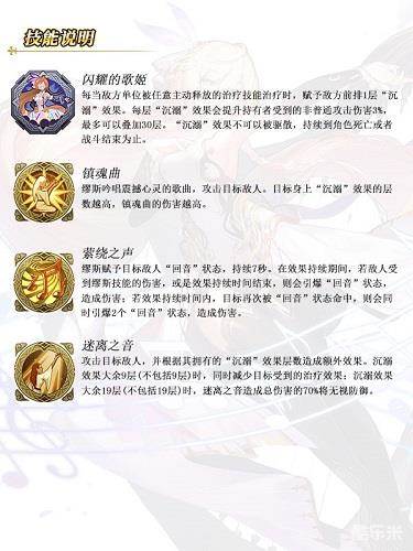 缪斯吟唱震撼心灵的歌曲,攻击目标敌人,目标身上“沉溺”效果的层数越高,镇魂曲的伤害越高。