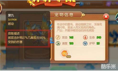 雷鸟 复仇:在被攻击时有27%几率反击100受到的伤害。