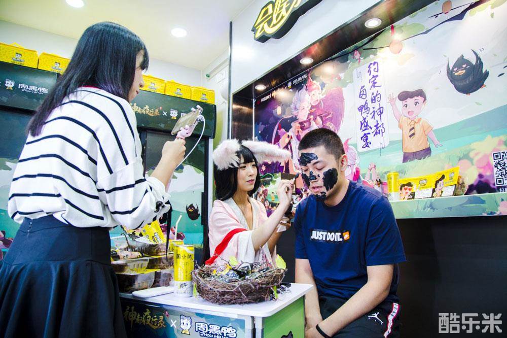 本次合作除了特惠套餐之外,还在10月14日晚8点举办了《神都夜行录》X周黑鸭广州天河直通车主题店吃播!知名B站up主小黑咕嘿嘿嘿变身涂山小月,携手策划现场抽卡吃鸭脖,一边享受周黑鸭卤味一边脸黑到一直吃辣味鸭脖不喝水,并且遭受海藻泥面膜特别惩罚。与此同时,策划还进行游戏试玩,向莅临现场的粉丝,以及直播前的众多玩家,展示《神都夜行录》游戏特色。