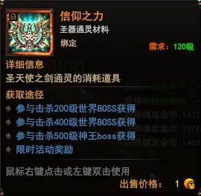 信仰之力是小伙伴们用来激活圣天使之剑通灵或者通灵升级的消耗道具!