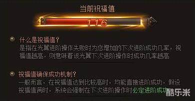 是指在光翼进阶操作失败时为您增加的下次进阶成功几率。祝福值越高,则意味着该光翼下次进阶操作时成功几率越高。