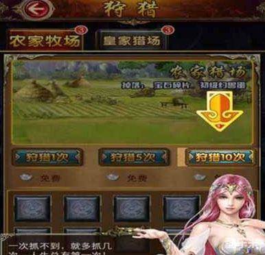 进入之后会有看到一个农家牧场的场景,然后是能够提供你狩猎的次数,分别是1次,5次,10次,都是免费的哦,一次抓不到,就多抓几次撒!点击狩猎十次,获得了3中石头碎片,还有4个低级的幻兽蛋,