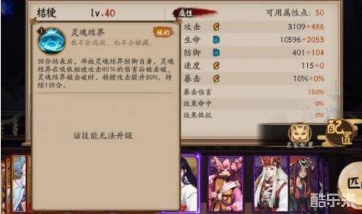 首先是桔梗的面板,SBBSS的面板在SSR中不算出众但是也处于中游,对于一个偏向于解控的辅助式神来说已经是十分好的了。攻击生命防御速度暴击都是属于中规中矩的那一类,可以说是符合剧情中的身份了,不过桔梗只要有颜值就够了啦。