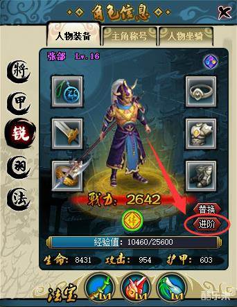 进阶是提升神将战力最有效的方法,当神将的好感度达到一定数值后,玩家可进入到角色系统中对相应的神将进行“进阶”的操作。进阶时需要的好感度可通过寻访神将获得。