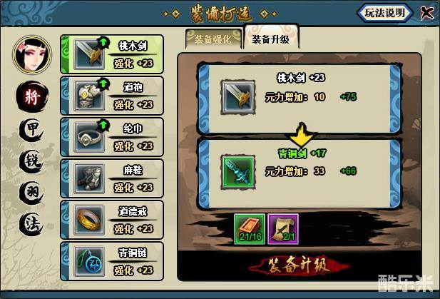 强化和升级可提升装备的属性值,装备属性上升后神将的战力也会得到相应幅度的提升。值得一提的是,装备是绑定在神将位上的,因此装备加成的属性值不会因为玩家更换神将而出现变化。