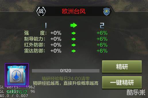 战机精研是消耗精研芯片来提升精研等级的培养方法。精研等级会百分比的强化战机以及战机武器,所以越强战机越适合精研;同时精研会一次消耗一些精研芯片,并且积攒的精研进度在第二天会清零(精研等级保持不变),所以精研前请先保证有足够的精研芯片。