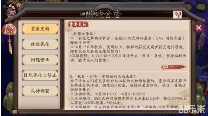 阴阳师秋日召唤活动介绍 SSR式神召唤概率提升2.5倍