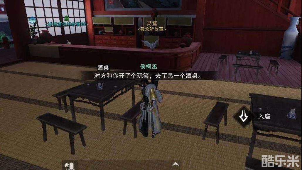 开桌人可以选择几个人参与游戏,并支付1w铜钱,开桌后酒馆内所有玩家都可以参与就坐,点斗酒或者到桌子附近都可以看到就坐按钮,如果不能入座就说明坐满了。开桌人开局后有准备时间,旁观者在准备时间内可以押外围,有三档可选,所押之人胜出会有铜钱回报,不清楚赔率。准备时间内参与者可以选择加酒,每轮系统会随机出酒,酒名会显示在上方,输的人就要喝下这瓶酒,喝醉的人出局。